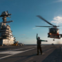 Fotografía: Marineros lanzan un helicóptero de la Guardia Costera de Estados Unidos desde la cubierta de vuelo del USS Gerald R. Ford, el 23 de septiembre de 2024. (Fotografía perteneciente a la Marina de Estados Unidos por Maxwell Orlosky).