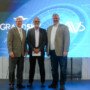 Fotografía: John Hoeven junto a responsables de AeroVironment. (Fotografía de AeroVironment)