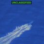Fotografía: La imagen muestra una captura aérea, clasificada como “UNCLASSIFIED”, en la que se observa una embarcación rápida navegando en aguas abiertas. La toma, realizada desde gran altitud, parece corresponder a un sensor óptico o infrarrojo de un sistema aéreo no tripulado (UAV) o aeronave de patrulla marítima, utilizada habitualmente para seguimiento y vigilancia de objetivos móviles en operaciones de interdicción marítima.