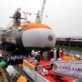 Fotografía: El sexto submarino de la clase Kalvari de la Armada India, perteneciente al Proyecto 75, botado en el dique seco Kanhoji Angre de Mazagon Dock Limited, el 20 de abril de 2022. (Créditos: Gobierno de la India)