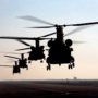 Fotografía: Aviones Chinook CH-47 despegando de la pista de vuelo en la base aérea de Al-Asad en 2009. (Fotografía del Cuerpo de Marines de los Estados Unidos por el Cabo Joshua Murray)