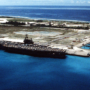 Fotografía: Portaaviones USS Saratoga, atracado en la base naval británica de Diego García (Créditos: Armada de los Estados Unidos)