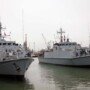 Fotografía: U311 Cherkasy, buque dragaminas, junto al U205 Chernihiv, una corbeta antisubmarina, en una base naval británica. (Créditos: Ministerio de Defensa de Reino Unido)