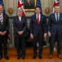 Fotografía: El viceprimer ministro y ministro de Defensa de Australia, Richard Marles, la ministra de Asuntos Exteriores de Australia, Penny Wong, el secretario de Estado, Marco Rubio, y el secretario de Guerra, Pete Hegseth, durante un intercambio bilateral en el Departamento de Estado en Washington, el 8 de diciembre de 2025.